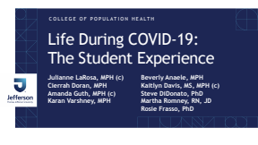 | | | | | | | 3rd Place | | Life During COVID-19: The Student Experience - Julianne LaRosa, Cierrah Doran, Amanda Guth—Thomas Jefferson University